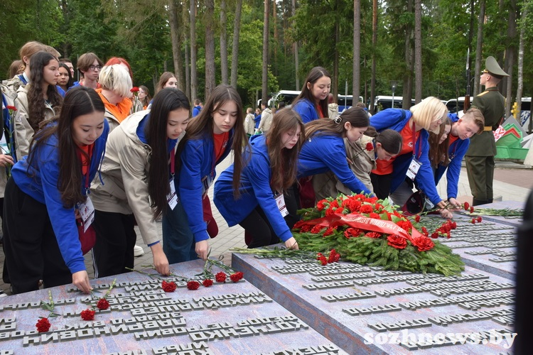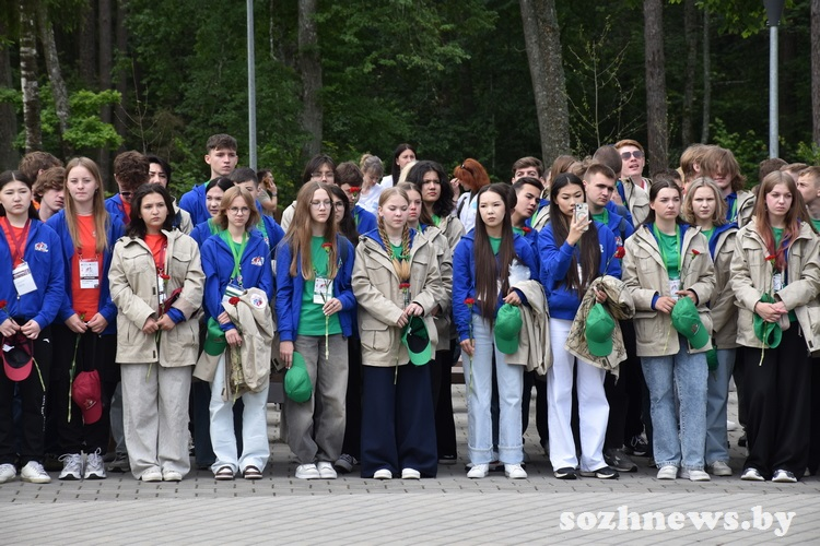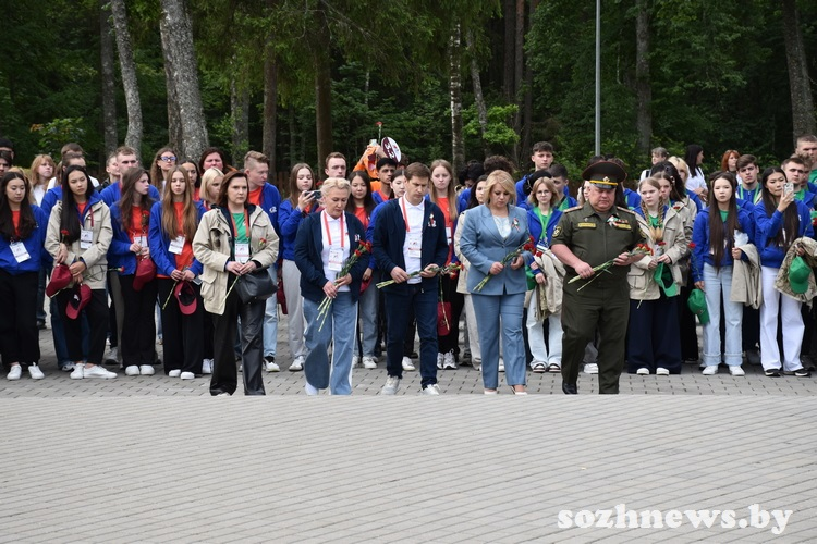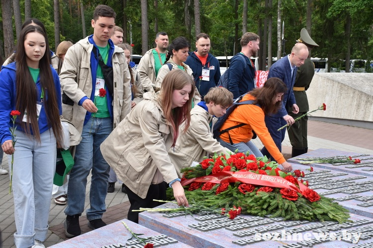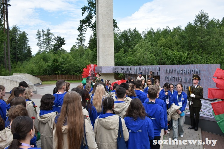 Поезд в пути уже четыре дня, за которые участники успели посмотреть четыре города Беларуси. Первой точкой на гомельской земле для них стал мемориал «Партизанская криничка», где ребята возложили венок и цветы в знак памяти воинов-освободителей.