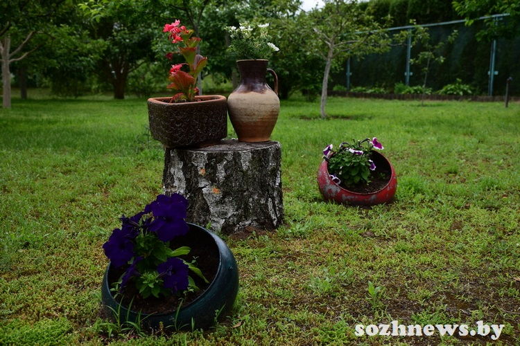 Супруги Дегтярёвы содержат в порядке и обширную прилегающую территорию: обкашивают, высаживают декоративные деревья и цветы. Недавно обновили малую архитектурную форму — декоративный колодец. А еще в этом году Татьяна Дегтярёва стала победительницей конкурса на лучшую клумбу «Цветы Победы», объявленного районной организацией Белорусского союза женщин.