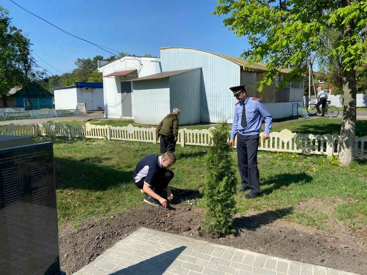 Юбилей Победы добрыми делами встречают чёнковские школьники. Вместе с инспекцией по делам несовершеннолетних отдела внутренних дел Гомельского райисполкома они провели акцию по благоустройству памятника участникам партизанского движения в Чёнках.