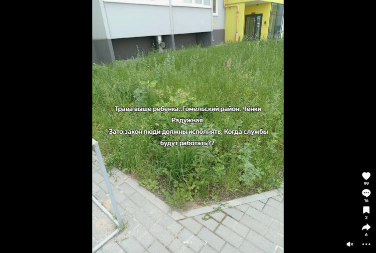 Автор видео в TikTok обратил внимание на высокую траву в Чёнках вдоль улицы Радужной.