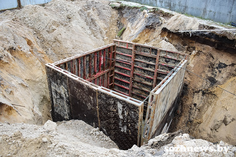 — В настоящее время идет монтаж сбросного коллектора, шпунтовое укрепление котлованов. Проводятся мероприятия по водопонижению и водоотведению открытым способом и другие работы. Производство работ по пересечению проезжей части ведется методом ГНБ, — пояснил начальник участка ООО «ФэтСит» Сергей Дробов.