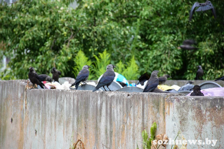 В агрогородке Ерёмино, возле домов по улице Сурганова, мы увидели переполненный контейнер, который уже облюбовали пернатые любительницы мусора — вороны.