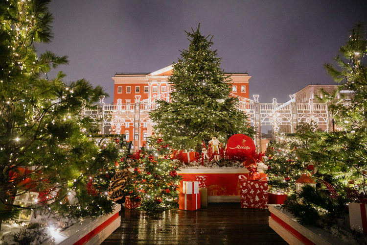 Манежная площадь в этом году удивит «Городом ёлочных игрушек» – необычной ярмаркой, вдохновлённой теплой эстетикой ватных игрушек начала XX века. Здесь можно встретить не только главных героев русского Нового года – Деда Мороза и Снегурочку, но и десятки других винтажных сказочных персонажей. Каждый желающий сможет сделать фотографии в декорациях, которые выглядят, будто их только что достали из старинного новогоднего сундука, принять участие в мини-спектаклях со сказочными сюжетами, попробовать традиционные блюда советских новогодних праздников.