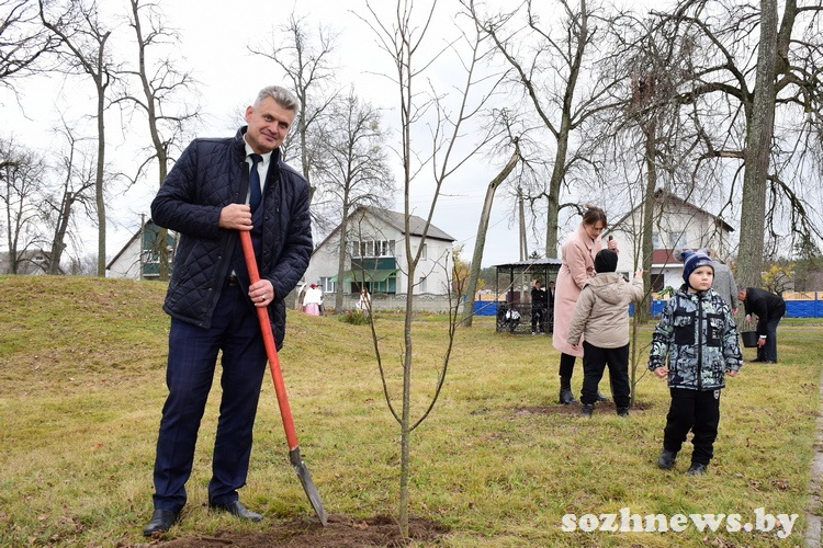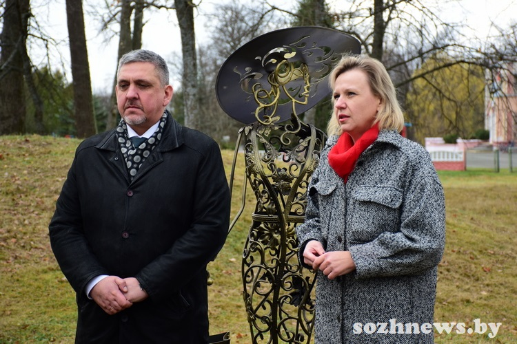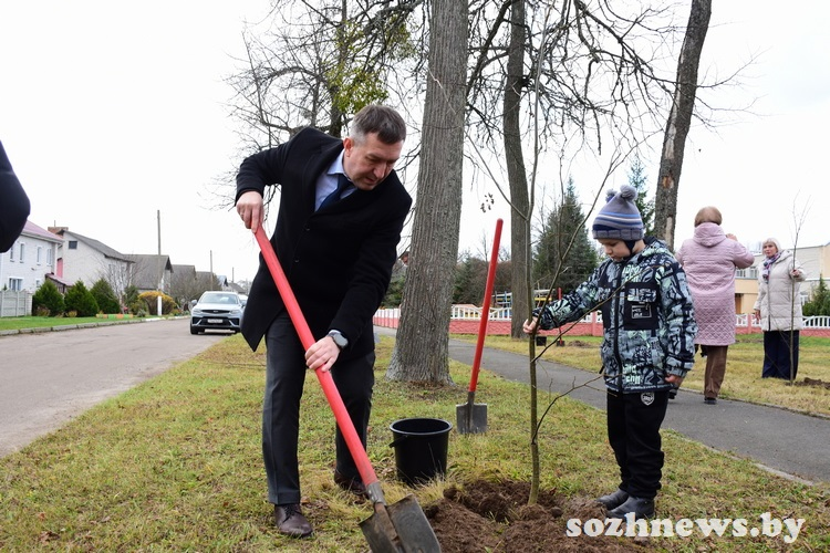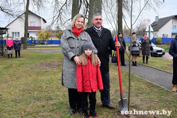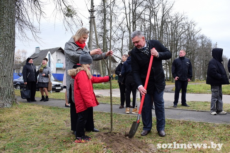 Участники диалоговой площадки открыли установленную вдоль аллеи малую архитектурную форму — даму-цветочницу, а также посадили деревья рядом со школой.