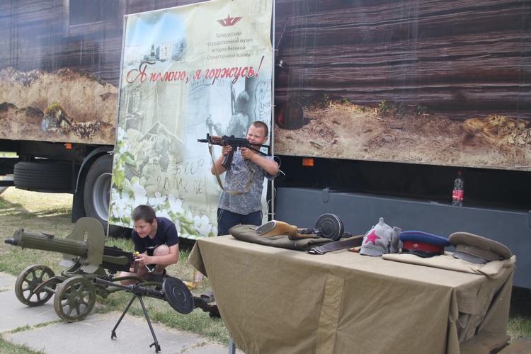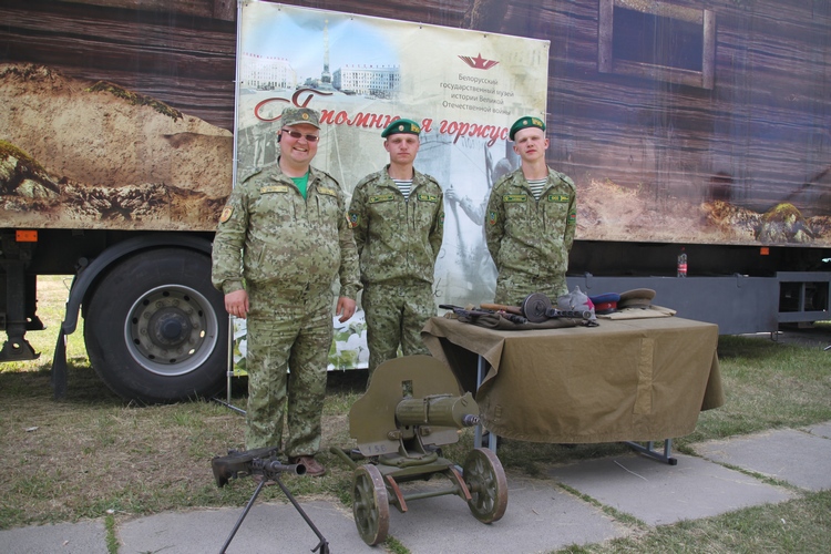 В эстафетную группу, помимо представителей Государственного пограничного комитета Республики Беларусь, входит мобильная экспозиция Государственного музея истории Великой Отечественной войны, отражающая долгий и нелегкий путь советских воинов и белорусских партизан к освобождению Беларуси.