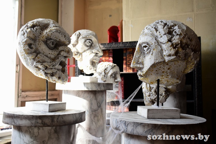 Те, кто видел спектакль «Дикая охота короля Стаха», премьера которого состоялась в мае прошлого года, конечно, запомнили галерею предков Надежды Яновской. Колоритные скульптурные изображения голов шляхтичей минувших эпох как нельзя лучше вписываются в общую атмосферу старого замка, скованного древним проклятием.