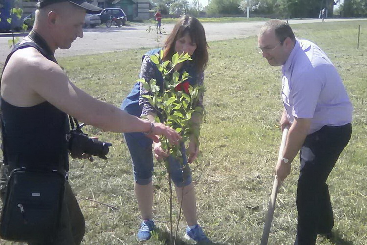 В Тереничах председатель Гомельского районного Совета депутатов Александр Ткачёв занимается благоустройством территории вместе с другими участниками социально-экологической акции «Маёвка#День малой родины».