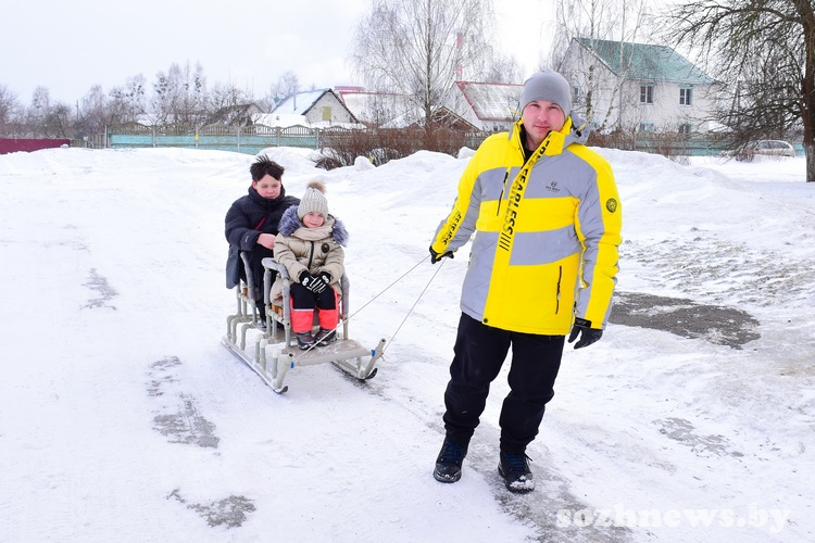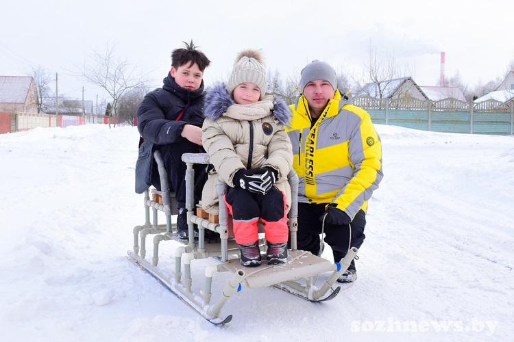 Учитель физкультуры и здоровья Урицкой средней школы Александр Жук не один раз мастерил из подручных материалов интересные вещи для своей семьи: например, веломобиль, коптильню, передвижную тележку… А популярность во всей Беларуси ему принесли двухместные санки. Изделие, кстати, отнюдь не новое — ему порядка шести лет. Но именно нынешняя зима предоставила много возможностей для катания с горки, и благодаря этому чудо-сани случайно попали в ролик популярной соцсети, где произвели фурор.
