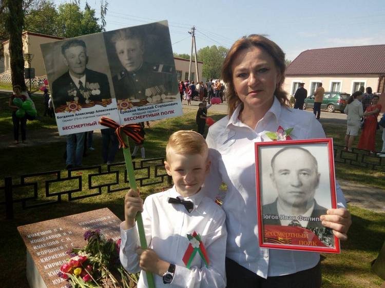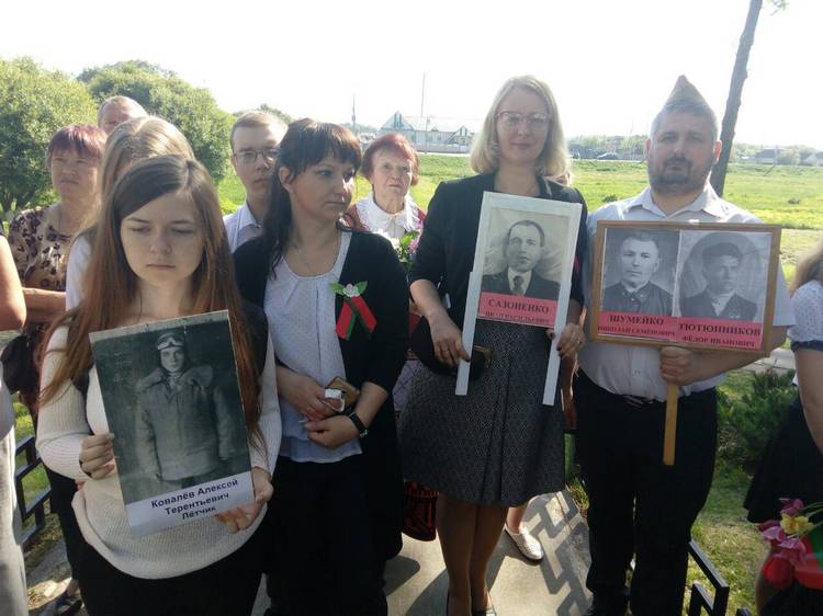 Наследники героев несли более 60 портретов славных предков. Шествие завершилось митингом у мемориала погибшим воинам.