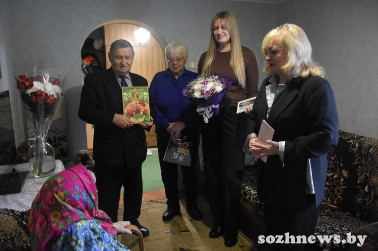 Поздравить юбиляршу с такой значимой датой приехали председатель Улуковской первичной ветеранской организации Вера Надточеева и председатель Гомельской районной организации ветеранов Анатолий Карчевский. От местной власти добрые слова и подарки передала председатель Улуковского сельисполкома Жанна Бизня. Также труженица получила поздравление от лидера отраслевого профсоюза аграриев района Ольги Замотевской.