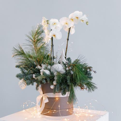 Орхидея фаленопсис. Изысканная и элегантная орхидея – отличный выбор для тех, кто предпочитает более сдержанный декор. Белые или нежно-розовые орхидеи выглядят очень нежно и воздушно, создавая атмосферу утонченности и праздничной сказки.