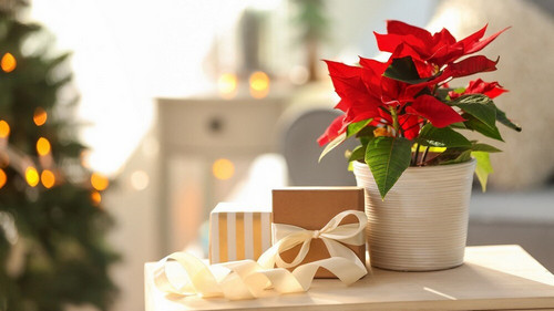 Пуансеттия (Вифлеемская звезда). Этот цветок, с его ярко-красными прицветниками, уже давно ассоциируется с Рождеством. Пуансеттия проста в уходе и выглядит очень эффектно. Разместите ее на видном месте, и праздничное настроение гарантировано.