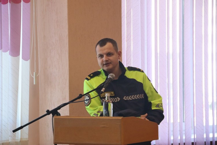 Александр Шахленков, государственный инспектор межрайонного отдела ГАИ УВД Гомельского облисполкома, напомнил присутствующим о необходимости соблюдения правил дорожного движения, привел статистические данные по происшествиям на дорогах района и напомнил, что включенные проблесковые маячки не дают преимущества в дорожном движении, а при проезде перекрестков необходимо быть особенно внимательными.