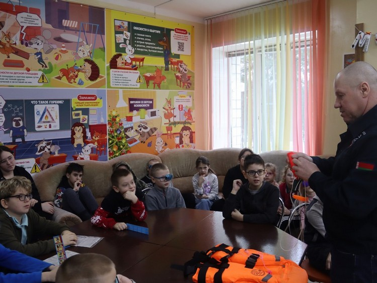Спасатели встретились с ребятами и провели обучающее занятие в имиджевой комнате на базе учреждения здравоохранения «Гомельская областная детская клиническая больница медицинской реабилитации». Вместе с огнеборцами ребят обучал безопасному поведению Игорь Корбут, председатель районной организации ОСВОД.