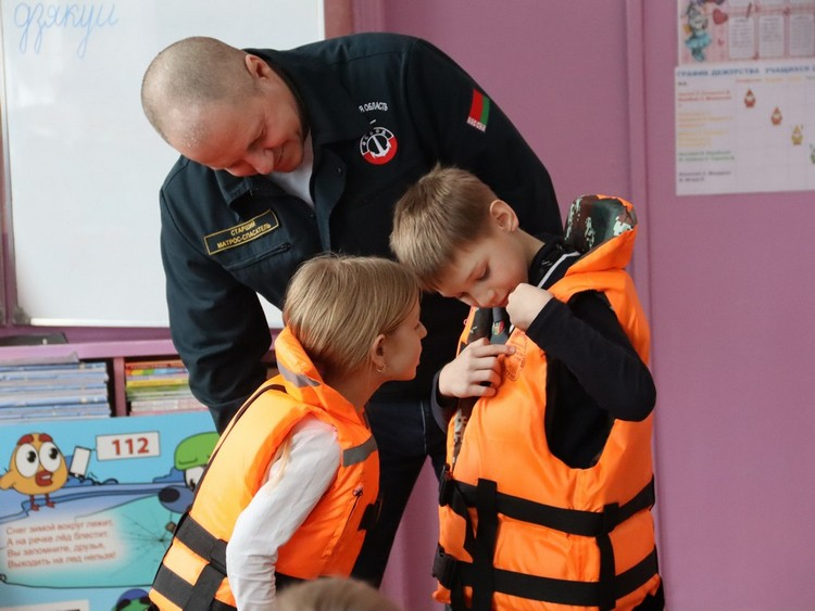Спасатели Гомельского районного отдела по чрезвычайным ситуациям совместно с председателем ОСВОД и активистами Белорусской молодежной общественной организации спасателей-пожарных проводят обучающие занятия для детей.