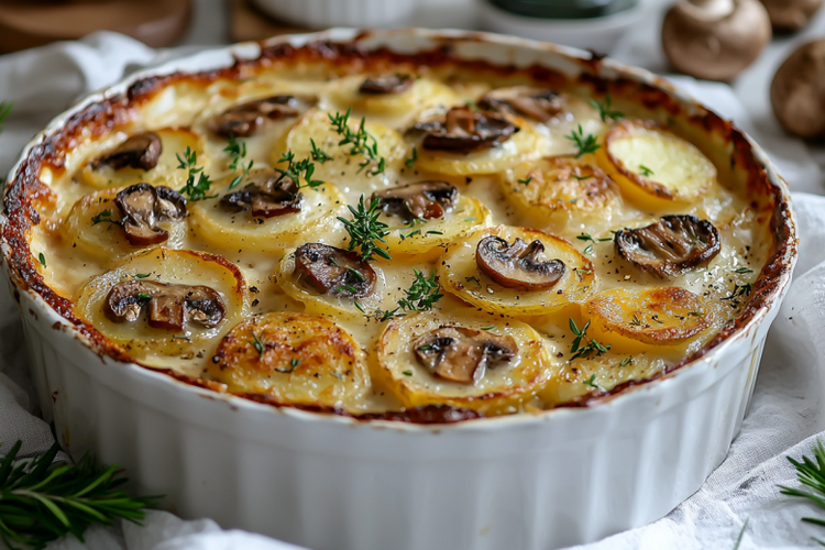 Ароматный картофельный гратен с грибами и сыром