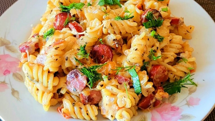 Быстро и вкусно: макароны с копчёными колбасками в сливочном соусе