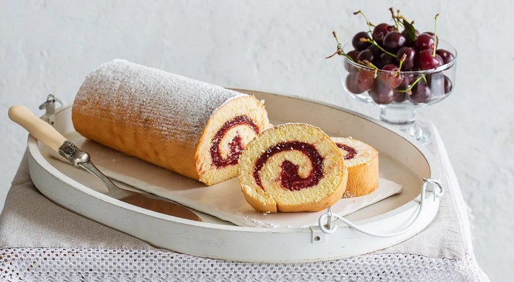 Нежный бисквитный рулет с вишней — вкусное лакомство для любого праздника