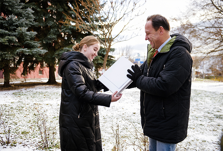 - Попросил никому ничего не рассказывать, мол, еще ничего неясно, а вдруг это обман, розыгрыш? – вспоминает Александра. - До последнего мы не верили, пока 12 декабря ко мне специально не приехали в Гомель, чтобы лично вручить мне мой макбук. От такого трепетного отношения у меня двойной шок! Как будто не про мою жизнь все это!