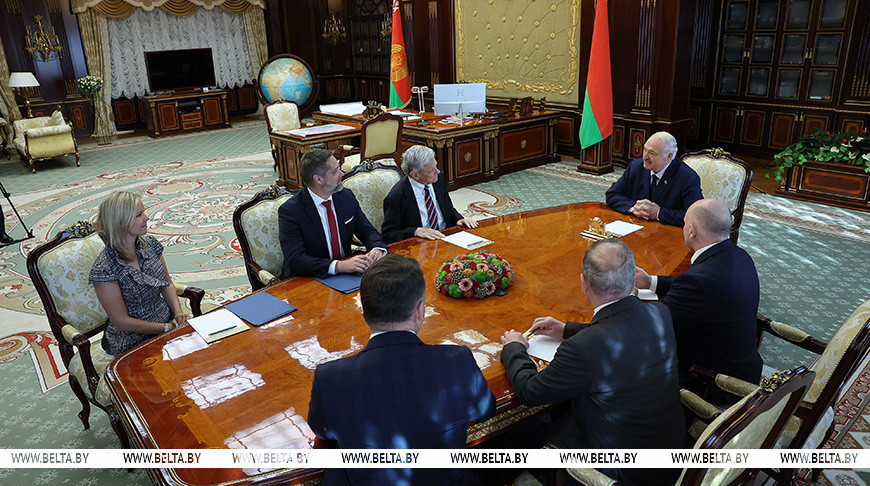 Президент Беларуси Александр Лукашенко во Дворце Независимости проводит переговоры с американской делегацией во главе со спецпосланником США Джоном Коулом, передает корреспондент БЕЛТА.