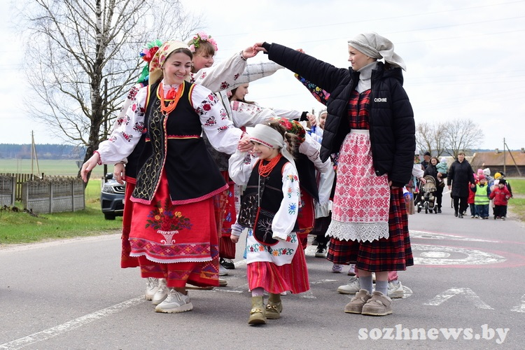 Первы крывы танок завялі на полі каля вёскі Гадзічава і, як заўсёды, з добрымі пажаданямі: “Каб у нас усё радзіла і маланка не біла”. Святочны маршрут прайшоў па вуліцы Чырвонаармейскай, дзе мясцовыя жыхары сустрэлі ўдзельнікаў шэсця велікоднымі пачастункамі.