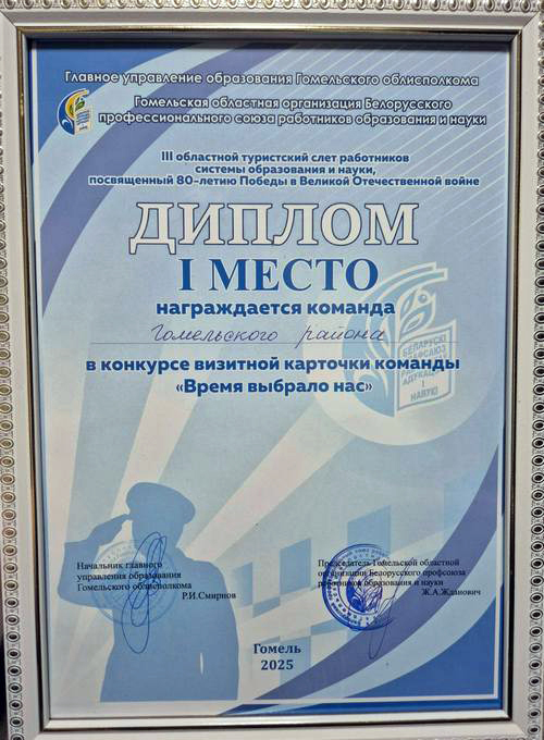 По итогам слета команда педагогов Гомельского района завоевала первое место в конкурсе визитной карточки «Время выбрало нас» и восьмое место в общем рейтинге спортивных соревнований. Школьники могут гордиться своими учителями!