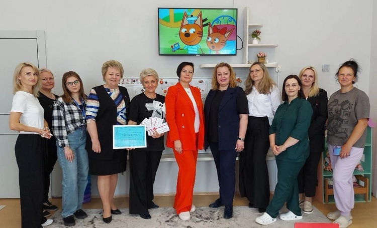 Подарочный сертификат от Гомельской районной организации и благотворительные сертификаты в «Диалог-Гомель» от всех председателей районных организаций отраслевого профсоюза области вручила коллективу СПЦ на приобретение вещей для воспитанников председатель Гомельского районного комитета Белорусского профсоюза работников образования и науки Наталья Прийма.