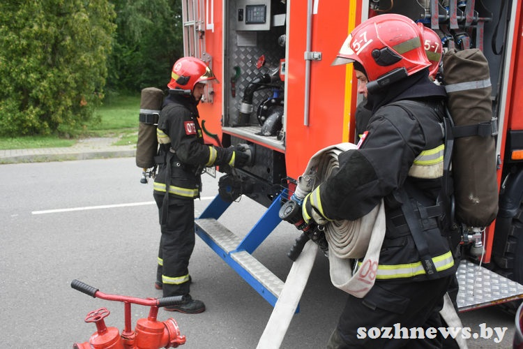 Пока вызовов не было, личный состав занимался теорией и практикой. Разбор реальных пожаров — смотрели видео тушения возгорания в Витебской области, анализировали действия коллег. Боевое развертывание — спасатели отрабатывали скорость: надеть снаряжение за 20 секунд, подключиться к гидранту и ликвидировать возгорание. Также проходили занятия по физической подготовке.