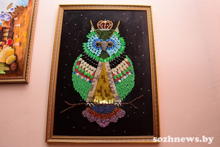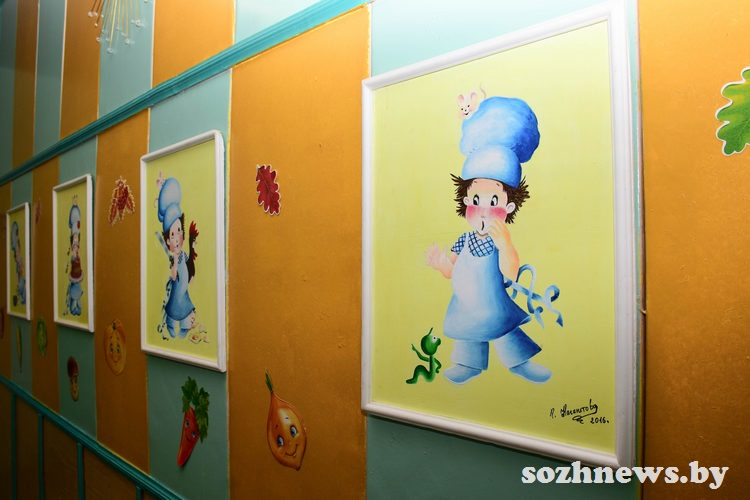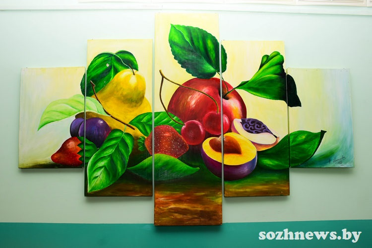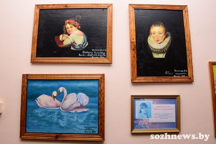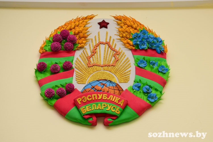 Рита Нагапетова — еще и мастер, создающий эксклюзивное оформление для Поколюбичской школы. На стенах можно увидеть ее картины и аппликации из разных материалов. Педагог оформила даже уголок с государственной символикой Республики Беларусь, где герб и флаг мастерски вылеплены из фоамирана, а карта Беларуси сделана из дерева.