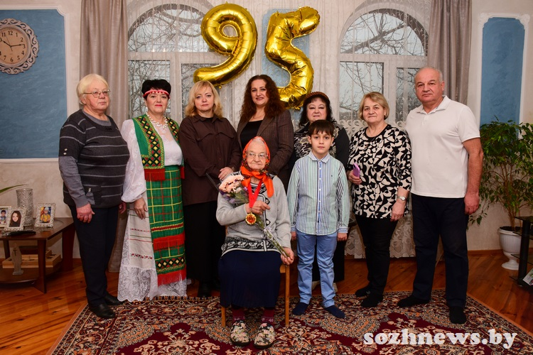 На 95-летие Валентины Петровны собралась многочисленная родня: приехала дочь Раиса, которая проживает сейчас за границей, трое внуков и трое правнуков. Поздравили долгожителя и начальник загса Гомельского райисполкома Елена Ритова, председатель Улуковского сельисполкома Жанна Бизня, председатель Улуковской ветеранской организации Вера Надточеева.