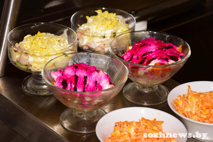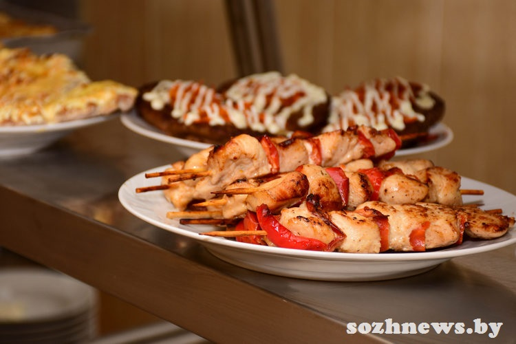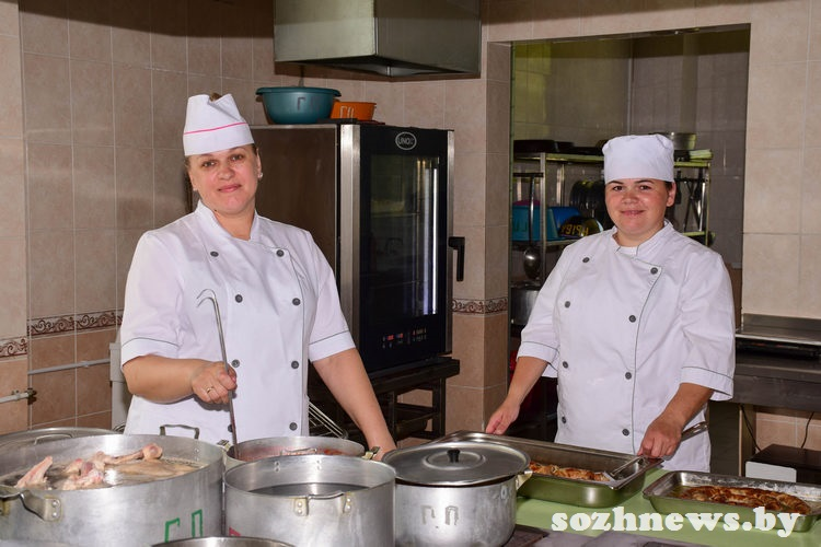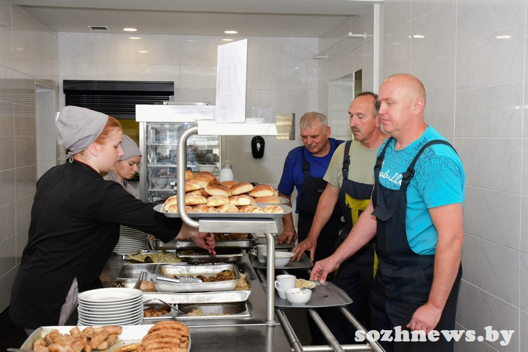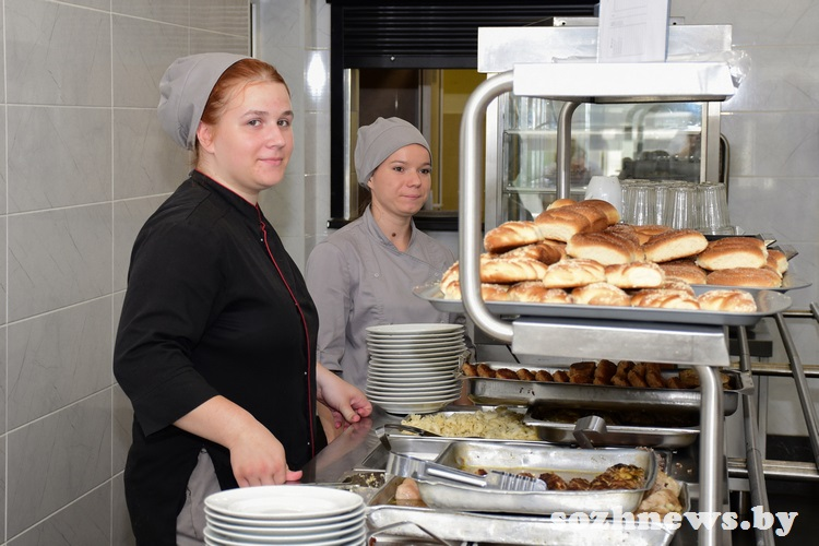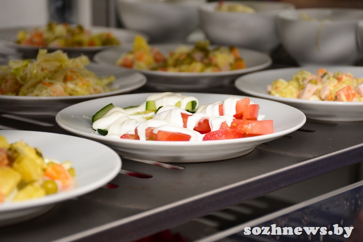 Следующая наша остановка — ОАО «Гомельагрокомплект». Буквально пару лет назад столовую здесь полностью обновили, помимо ремонта заменили на современное и технологичное все оборудование на кухне. Предприятие относительно крупное, соответственно, и нагрузка у работников столовой приличная. Четыре повара и один кондитер справляются с довольно большим количеством разнообразных блюд.
