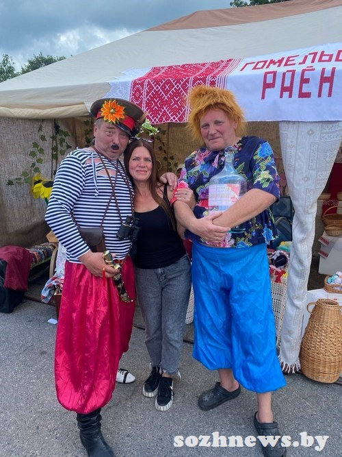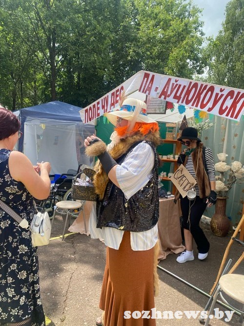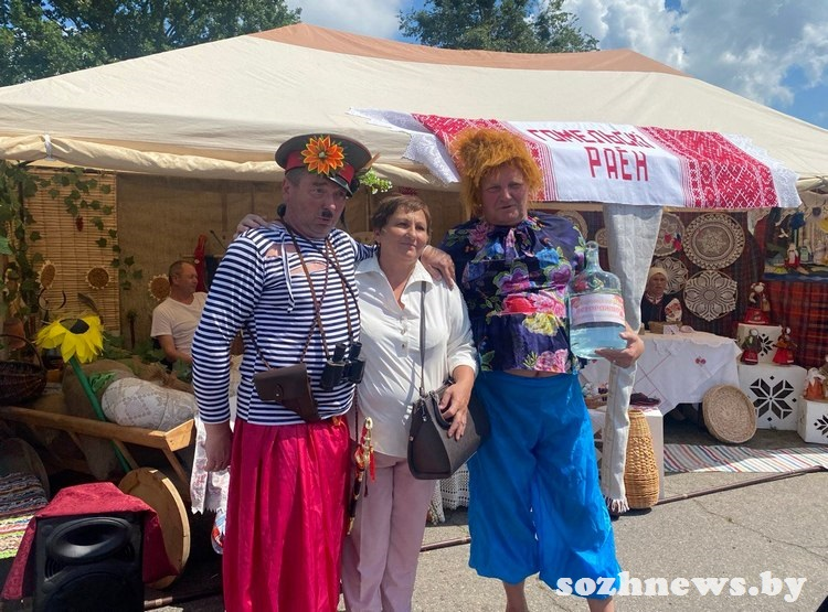 Пока герои кинофильма веселили народ и добрососвестно отрабатывали фотосессию, работники центра ремесел Гомельского района под руководством директора Елены Дудкиной угощали прохожих вкусным травяным чаем и свежеиспеченным хлебом.