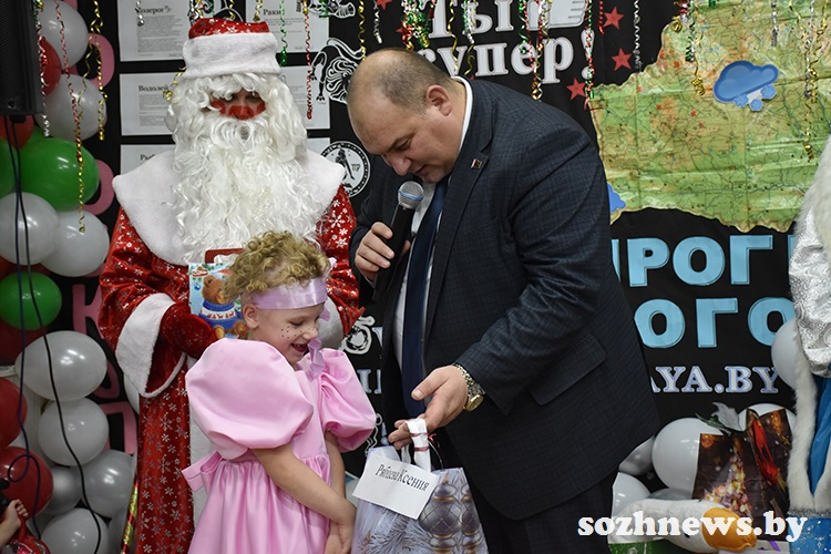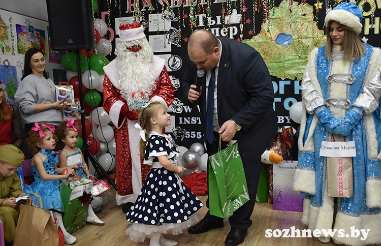 Вместе с Дедушкой Морозом в рамках акции «Елка желаний» подарки детям вручили председатели Гомельского райисполкома и райсовета депутатов Дмитрий Козел и Виктория Ладутько.