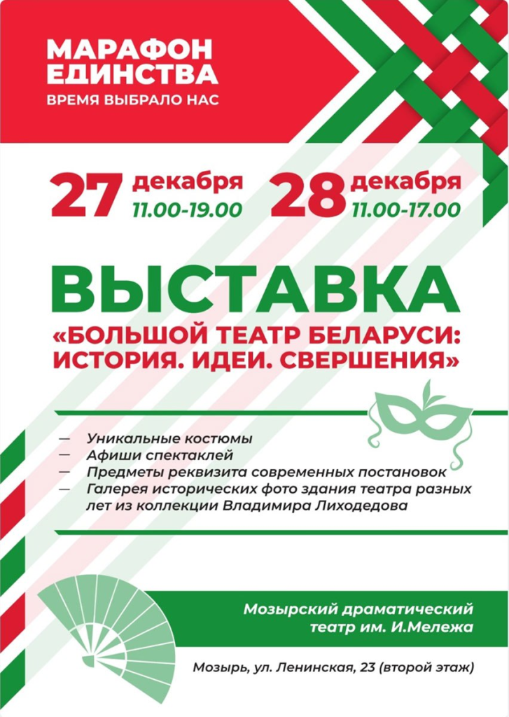 Также Большой театр привезет в Мозырь выставку, в которой будут представлены уникальные костюмы, афиши спектаклей, предметы реквизита современных постановок, исторические фото здания театра разных лет из коллекции Владимира Лиходедова.