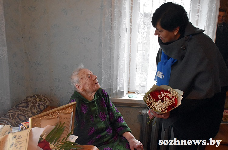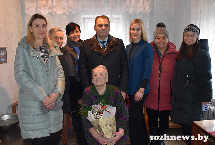 Со столетним юбилеем жительницу Урицкого Галину Старовойтову поздравили председатель Урицкого сельисполкома Михаил Выгляд, председатель районной ветеранской организации Анатолий Карчевский, представители ТЦСОН Гомельского района, общественной организации «Белорусский союз женщин» и местной школы.