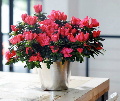 Азалия. Этот цветущий кустарник порадует вас обилием ярких бутонов. Выбирайте азалии красных, розовых или белых оттенков, чтобы создать новогоднюю атмосферу. Азалия требует прохлады и влажности, поэтому обеспечьте ей подходящие условия.