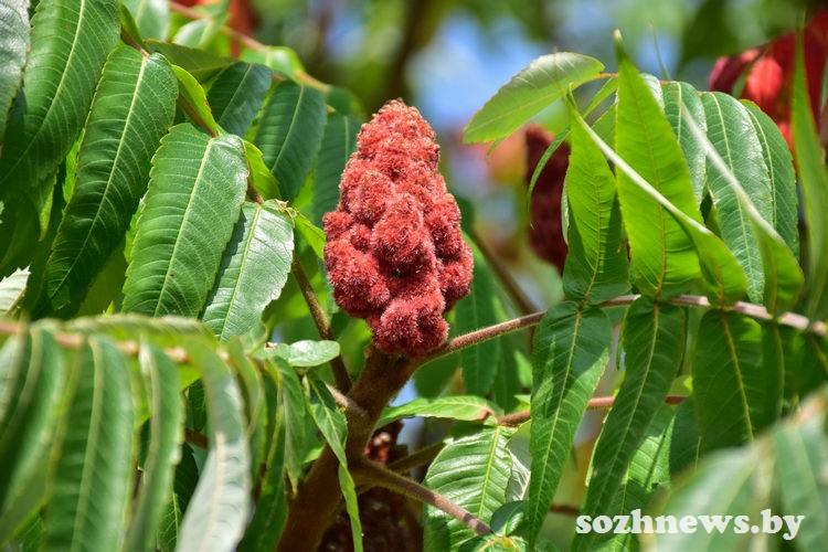 Уксусное дерево, или сумах оленерогий, – растение весьма спорное для посадки на участке. С одной стороны, оно привлекает своей экзотической красотой: крупные перистые листья, бархатистые ветви и яркие бордовые соцветия-свечи осенью. Оно неприхотливо, быстро растет и укрепляет почву.