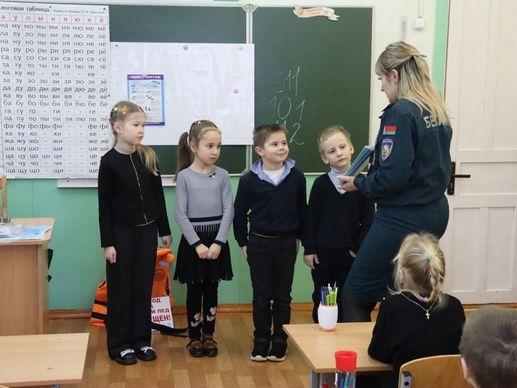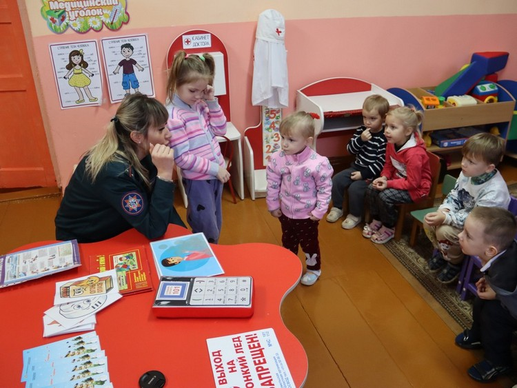 Огнеборцы рассказывают детям о безопасности дома и на улице. Особое внимание уделяется поведению вблизи водоемов в зимний период. Ребята вместе со спасателями вспоминают алгоритм действий при выходе из задымленного помещения, а также номера, по которым можно вызвать работников МЧС.
