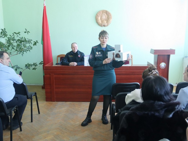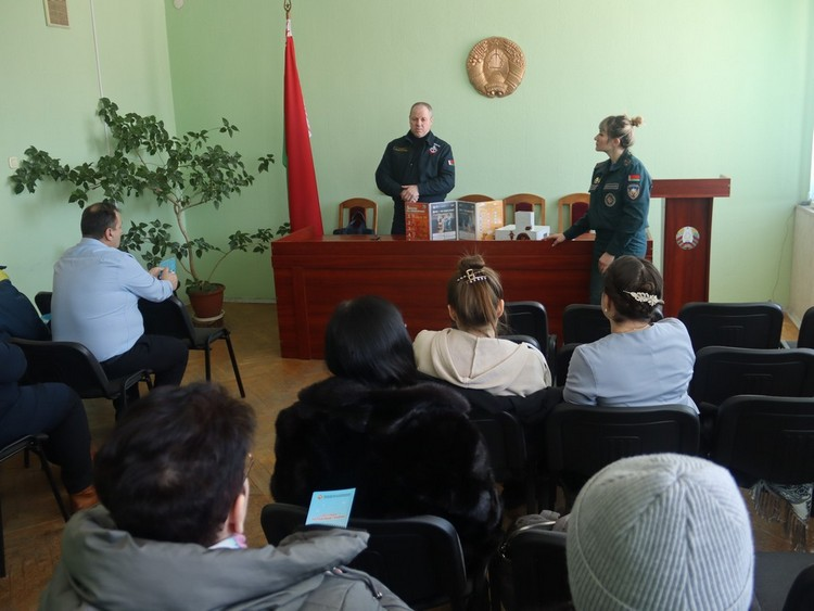 Местом встречи со спасатели стал конференц-зал в здании сельсовета. Здесь собрались представители различных социальных категорий. В числе участников были и работники ближайших предприятий и организаций.
