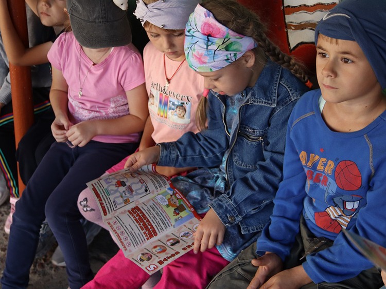 Детишки с удовольствием отвечают на вопросы пропагандистов, разбирают чрезвычайные ситуации, в которые попадает кошечка Даша, обсуждают, чему учат главные герои мультсериала от МЧС «Волшебная книга».
