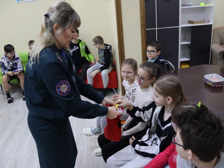 Также участники встречи примеряли боевую форму одежды спасателей и отвечали на каверзные вопросы из новогоднего чулка. А самые активные получали не только буклет с важной информацией от МЧС, но и сладкий приз.