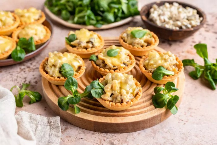 Эти аппетитные тарталетки прекрасно подойдут как закуска на праздничный стол или самостоятельное блюдо для уютного семейного обеда.