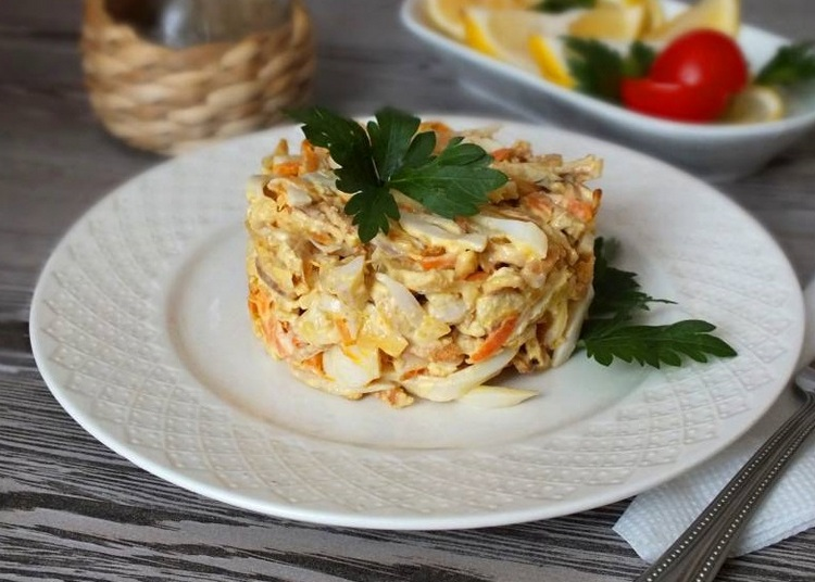 Салат с кальмарами и блинами: изысканное сочетание вкусов
