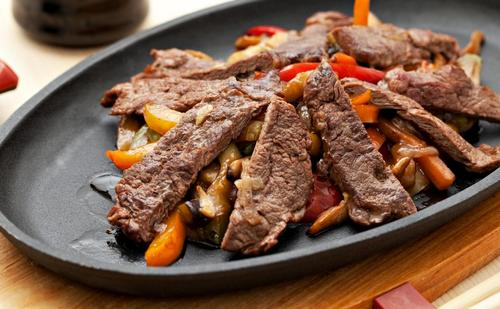 Приготовление: Стейк режем на небольшие кусочки и обжариваем их на сковороде с растительным маслом до готовности. Затем нарезаем лук, картофель и морковь на небольшие кусочки и добавляем жариться к мясу. Добавляем спаржу и обжаривайте все вместе до готовности. В отдельной сковородке обжариваем грецкий орех до золотистого цвета. Перемешиваем обжаренные овощи и мясо, добавляем соль и перец по вкусу. Подаем блюдо посыпав грецкими орехами.