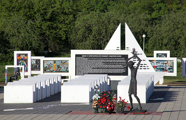 Смерть и свет — рядом… Сегодня сюда приходят молодожены, чтобы возложить цветы у сломанной карты, у доски с письмом Кати Сусаниной, чтобы про себя произнести слова памяти. Их дети обязательно будут счастливыми, потому что за молодоженами, за белым шлейфом невесты невидимой охраной идут 1990 когда-то живших здесь детей. Не только об умерших думали создатели мемориала, но и о тех, кому жить на этой земле. Сюда приходят будущие мамы —выбрать своему ребенку имя из тех, что начертаны на парусе белого кораблика. Чтобы не прервалась связь времен. Уходят отсюда в полной тишине. Шумят сад и ближний лес, молчат камни мемориала и люди. Слова могут помешать… Тишина. Слушают яблони Красного Берега, слушает Жлобин, Гомель, Минск. Слушает Беларусь. Идет Урок Истории. Твое письмо дошло, Катя! Мир праху твоему, дитя Беларуси! Завтра это письмо прочтут все, кто придет к «детской Хатыни», как уже назвал этот мемориал народ. К белому памятнику, где только одно черное пятно — классная доска с твоим письмом. Слушает Земля. Говорят мертвые дети