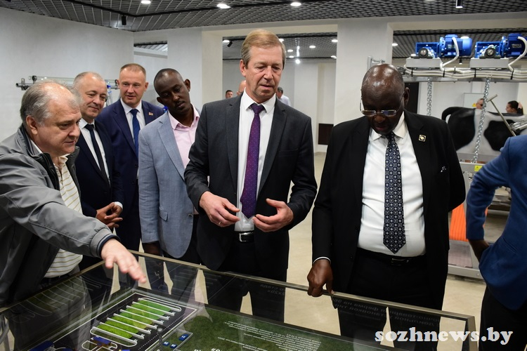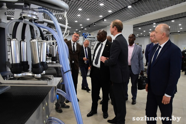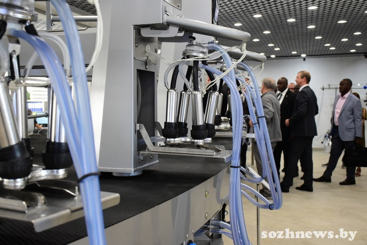 Современные установки для доения коров предприятия «Гомельагрокомплект» вызвали у специалистов с африканского континента большой интерес. Как рассказал Брайтон Рамира, в Уганде большая часть населения занята в сельском хозяйстве. Животноводство — одно из важных направлений, в стране в нем занято три миллиона фермеров. В основном это небольшие фермерские хозяйства, на 20–40 голов. Для таких объемов, по мнению государственного министра по животноводству, подходит установка индивидуального доения, к ней у него было особое внимание. Поразили иностранных гостей доильные установки «Параллель» и «Карусель». Как работает такое оборудование, им продемонстрировали на видео.