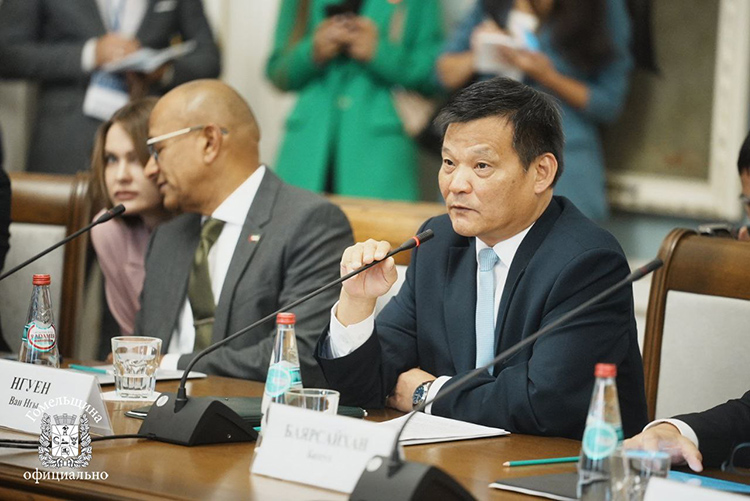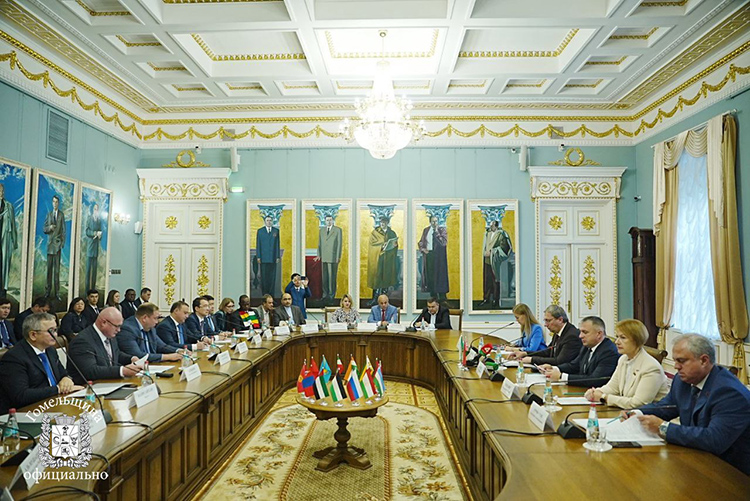 В зале Дворца Румянцевых и Паскевичей состоялась встреча председателя облисполкома Ивана Крупко с представителями зарубежных делегаций из 16 стран. Среди них Казахстан, Китай, Вьетнам, Монголия, Индия, Иран, Палестина, ОАЭ, Зимбабве, Бразилия, Пакистан и другие. И, конечно, делегаций российских регионов - из Брянской, Магаданской, Кировской и других областей, Приморского края, Башкортостана.