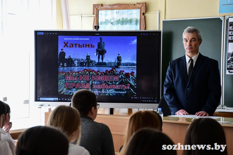 К уроку «Память и боль белорусской земли», организованному руководителем по военно-патриотическому воспитанию Дмитрием Щербиным, школьники готовились серьезно: читали тематическую литературу, учили стихи, рисовали плакаты, посвященные сожженным деревням. Среди них и малая родина Николая Титова — деревня Копанка Ельского района, 186 жителей которой заживо погибли в огне 18 июля 1942 года.