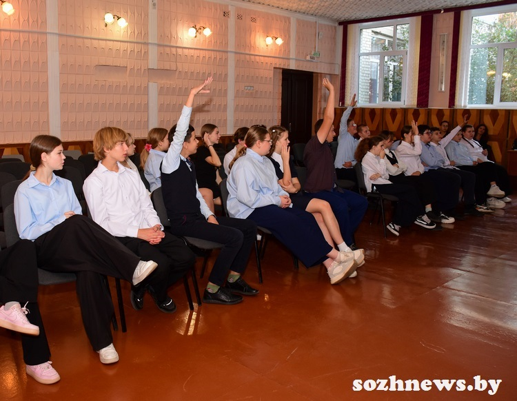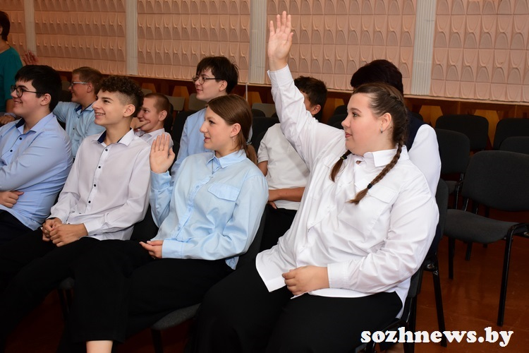 Пришедшим на встречу восьмиклассникам вот-вот исполнится 14 лет, а значит, время задуматься о вступлении в одну из самых массовых общественных организаций страны — Белорусский республиканский союз молодежи.