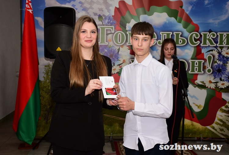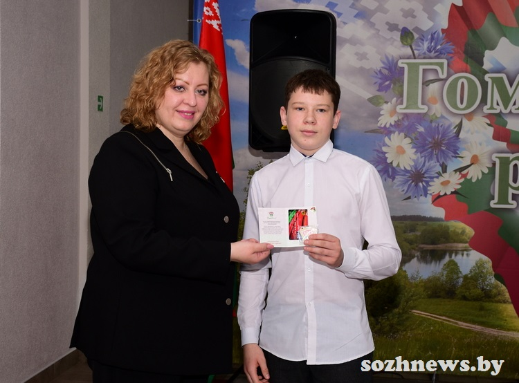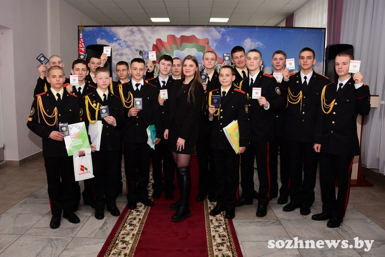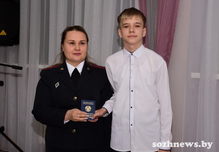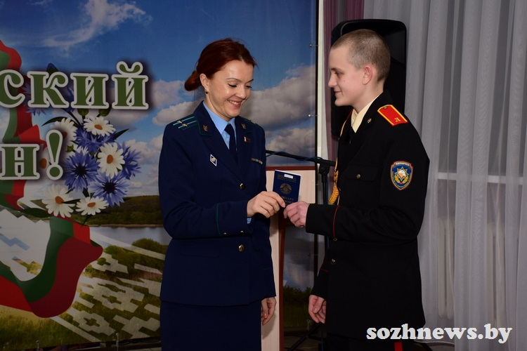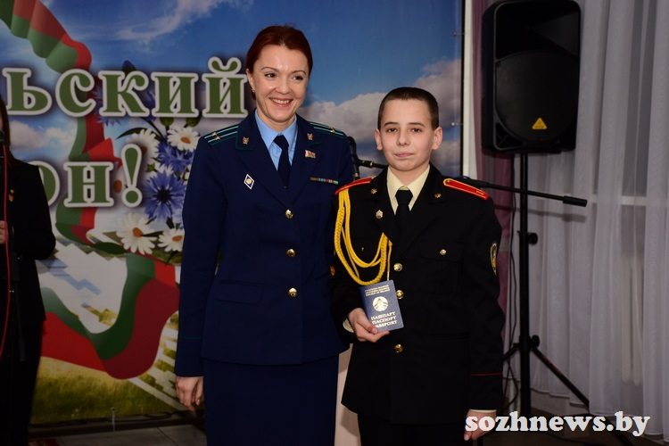 Под громкие аплодисменты заместитель прокурора и инспектор ОГиМ ОВД Гомельского райисполкома вручили ребятам их первые паспорта.